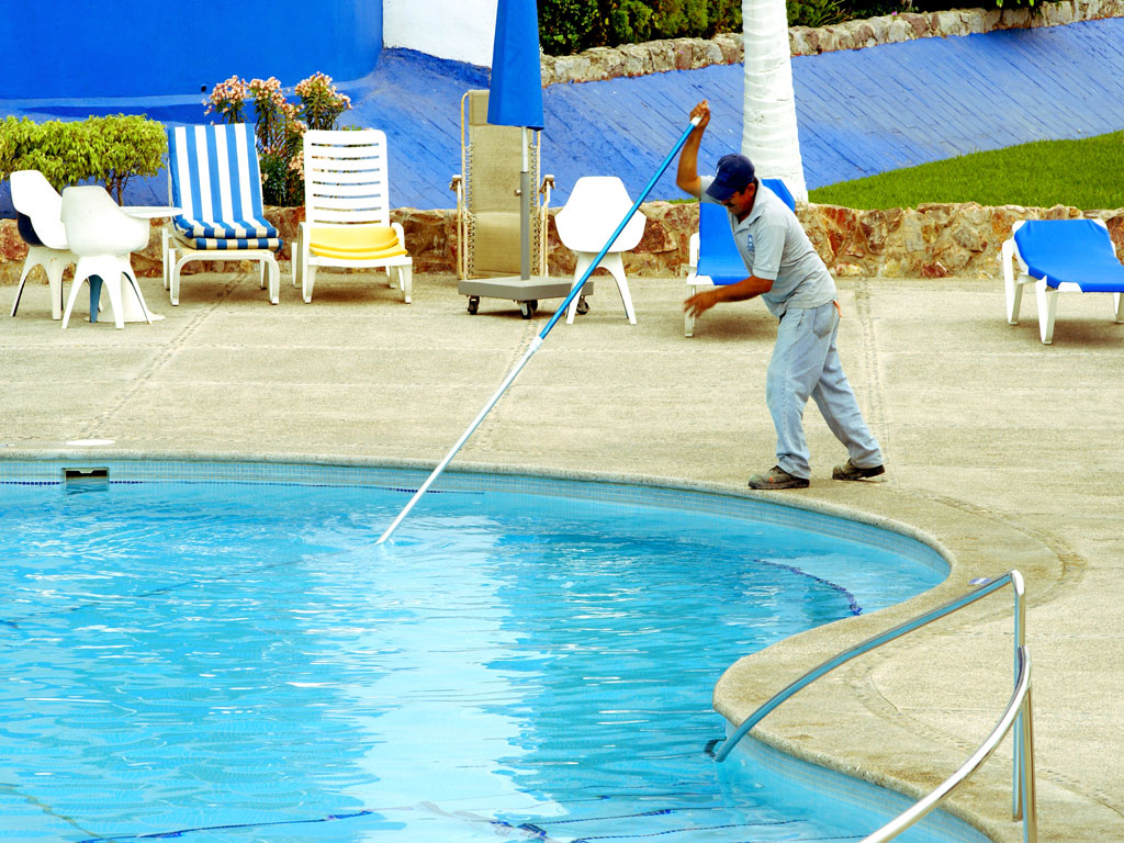 – تنظيف مضخة المياه التي تغذي و تنقي حمام السباحة. – كذلك تنظيف ماسورة صرف المياه.